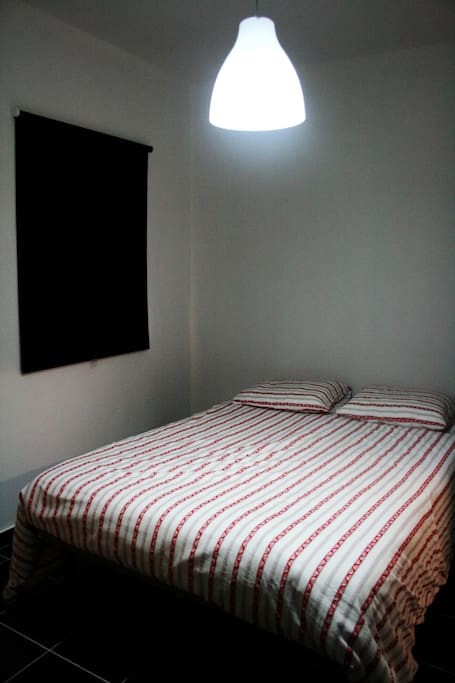 Descrição da casa: casa com dois quartos, duas casas de banho e sala com kitchenette.
