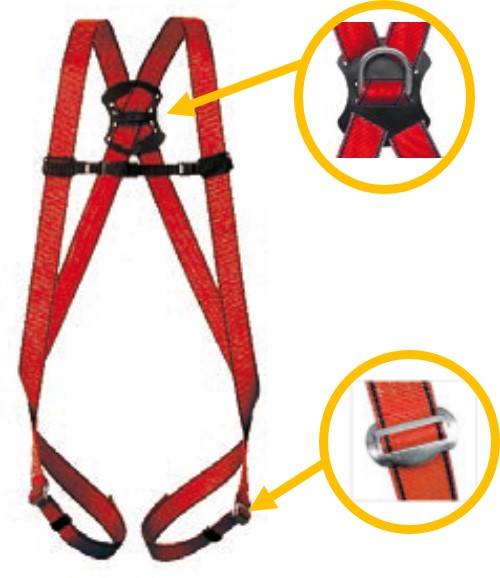 Arnês básico para trabalhos em vários setores. Tem um ponto de âncora dorsal, fivela de conexão-regulação de correias nas pernas e fecho Tem um peso de 650 gr.