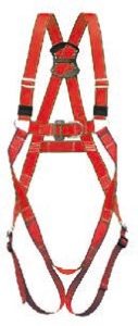 Arnês básico para empregos em vários setores. Tem fita sub-glútea, que impede o movimento do chicote nas pernas durante o movimento de flexão e subida do operador. Tem um ponto de âncoragem dorsal, fivela de conexão-regulação de correias em pernas e fechos Tem um peso de 700 gr.